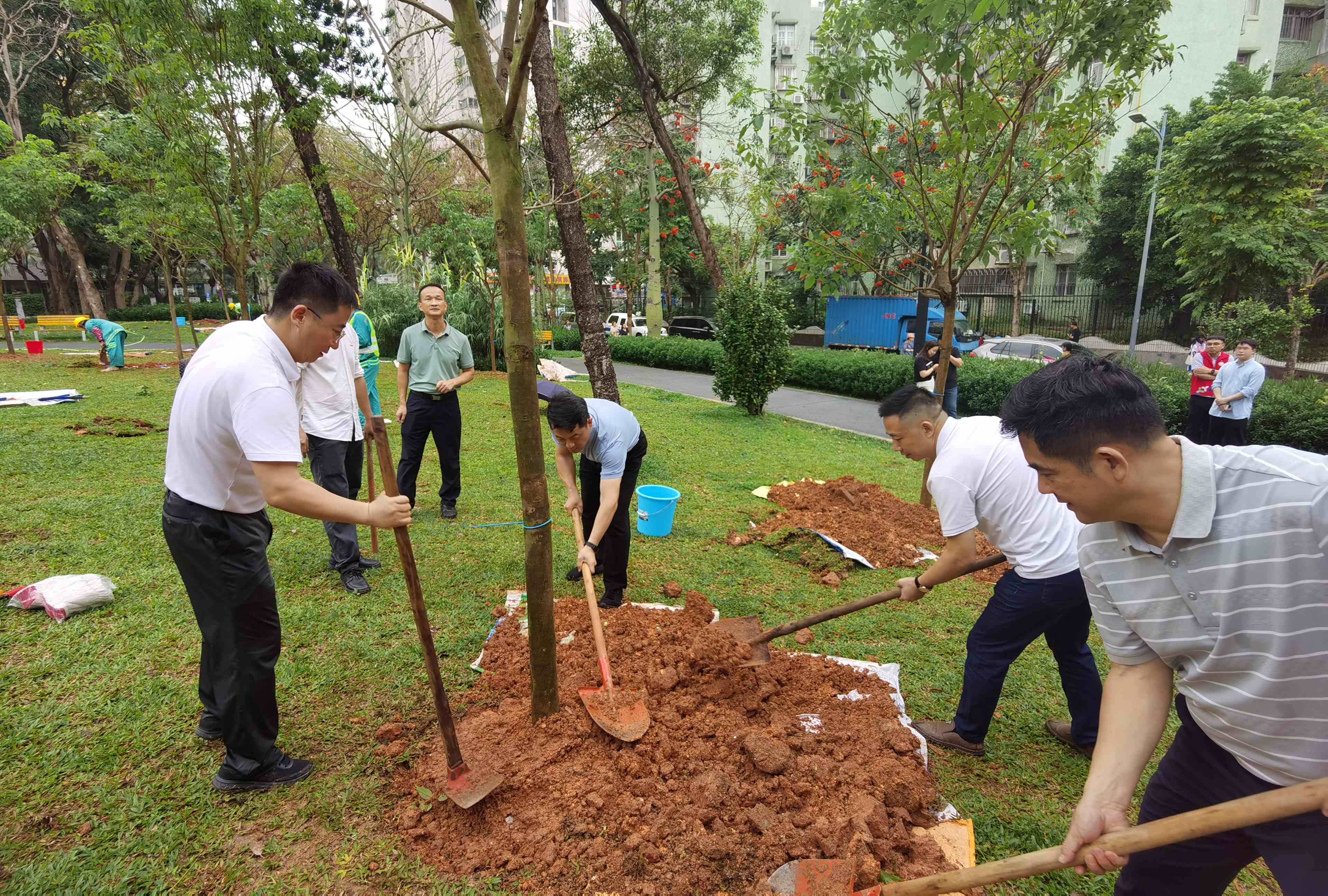 为深入学习习近平生态文明思想,积极响应省委、市委、区委关于推进绿美广东生态建设部署战略,高质量开展“山海连城绿美福田”工作,4月7日下午,深圳市生态环境局福田管理局副局长许茂煜、莲花街道党工委书记范磊、街道办事处主任邓超、委员袁庆峰、BG大游环境董事长陆柱及莲花社区、执法队等各级领导在景田北二街公园参与莲花街道党建办引领的“绿美莲花”植树活动。